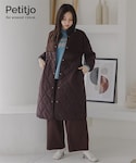 ゆみん(nissen本店)のノーカラーコート「小さいサイズ ボア切り替えキルティングミドルコート 低身長さん・小柄女性」を使ったコーディネート