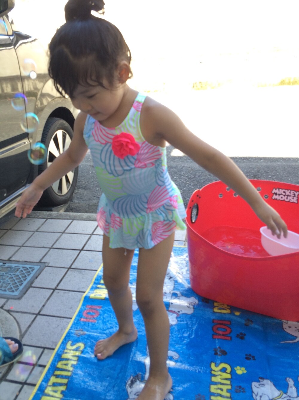 ホワイト系の水着を着用したキッズの夏コーディネートの1枚目の写真