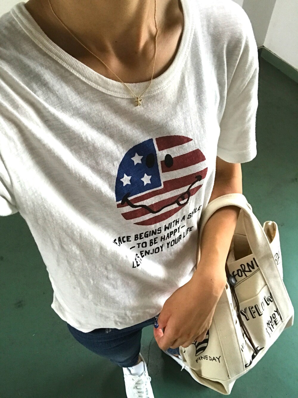 アメリカンなニコちゃんTシャツ◡̈⃝ ネットで一目惚れして購入〜♫ キッズサイズもあるから 子どもとお揃いでゲット🤙💙 BAYFLOWのブック本トートバッグ👜 かわいいしいっぱい入るし めっちゃ使えるー!♡