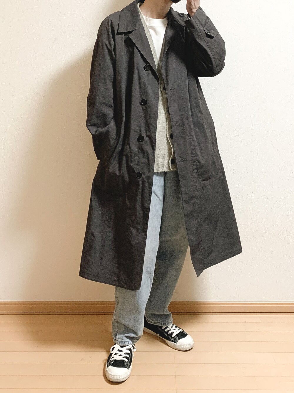 えあろのステンカラーコートを使ったコーディネート