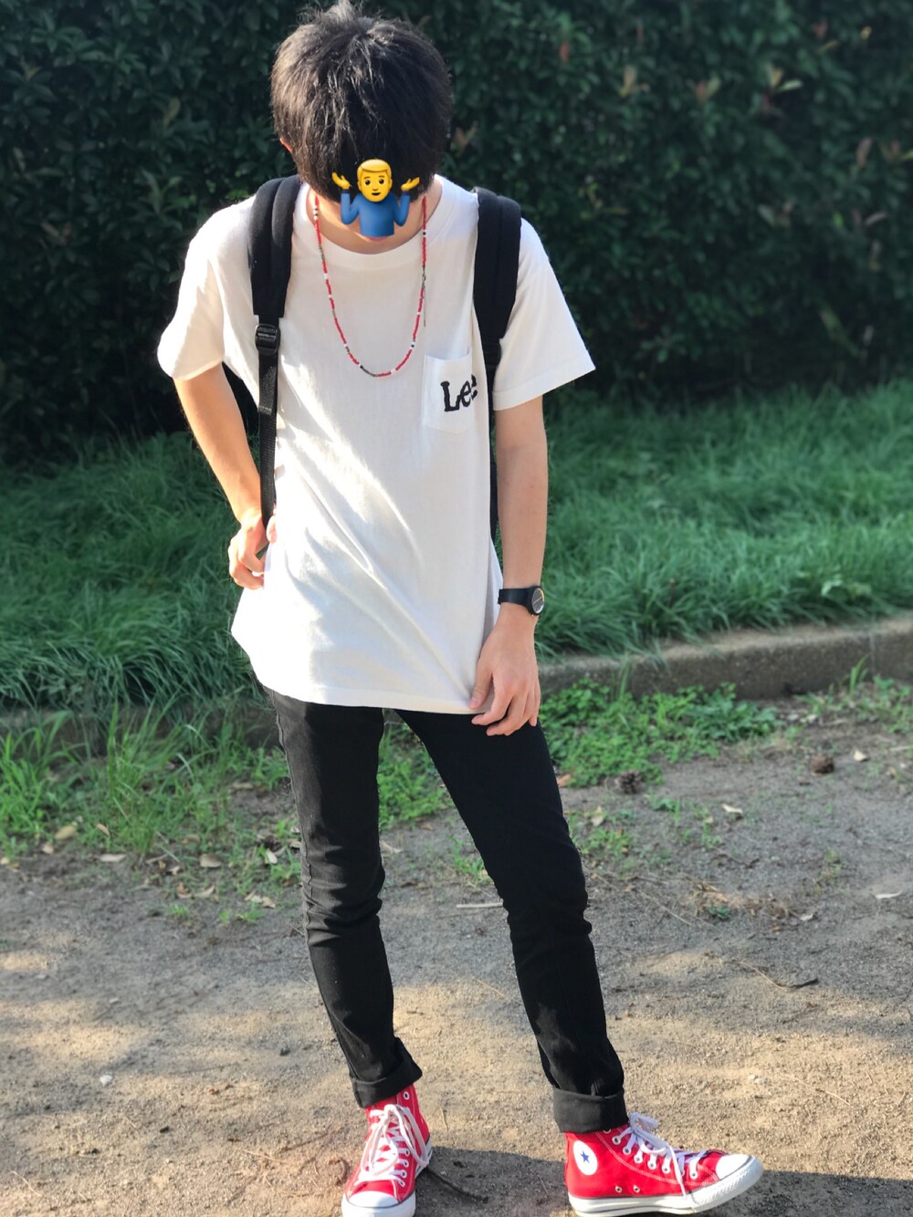 こんにちわ!🙋♂️ 暑いですね、、、歩いてるだけで日焼け。 今日はシンプルに白T✖️黒スキニー🙆♂️ LEEがとても可愛くてお気に入りです。 そして安定の赤コンバース👟 【サイズ】 Tシャツ:S パンツ:S シューズ:26.0