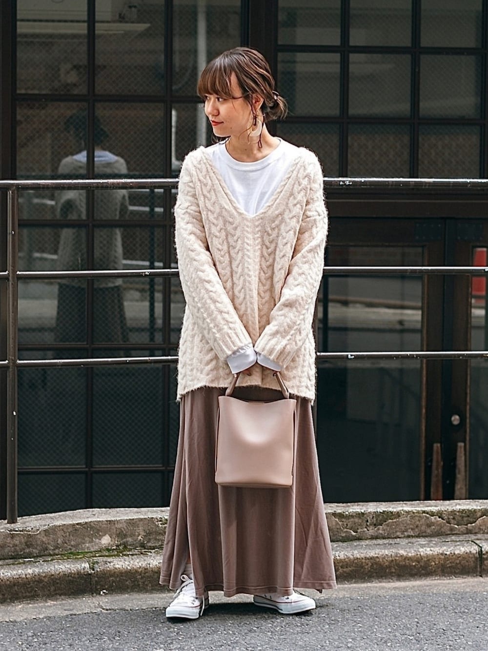 arisaのニット/セーター「ストレッチアルパカケーブルVネックセーター」を使ったコーディネート