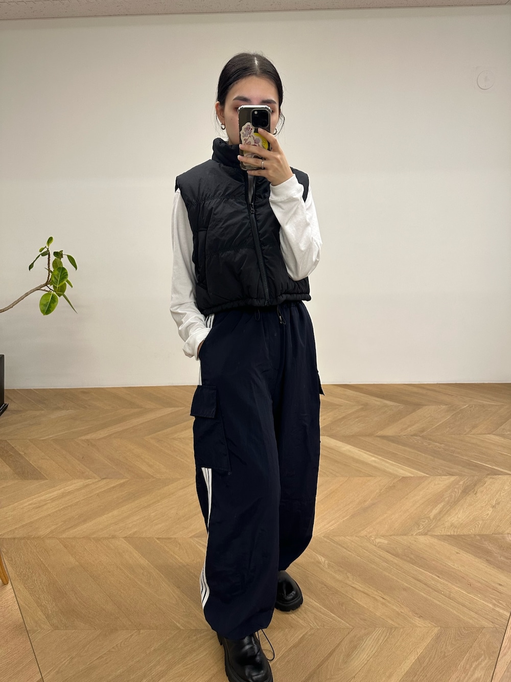 ARISA(CANALJEAN 神戸店)のダウンベスト「RED CHOP WORKS 中綿クロップドベスト」を使ったコーディネート