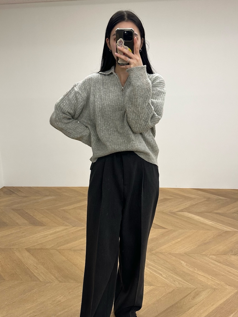 今季はグレーを着がち🐼 ハーフジップニットはTシャツ入れても可愛いけど大人っぽく1枚で♡ 柔らかい生地感でかなり着やすいです◎