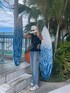 沖縄着いて、デニムに履き替えました👖 トップスの脇がめちゃくちゃあいてるからH&Mのオレンジの水着きてみた👙