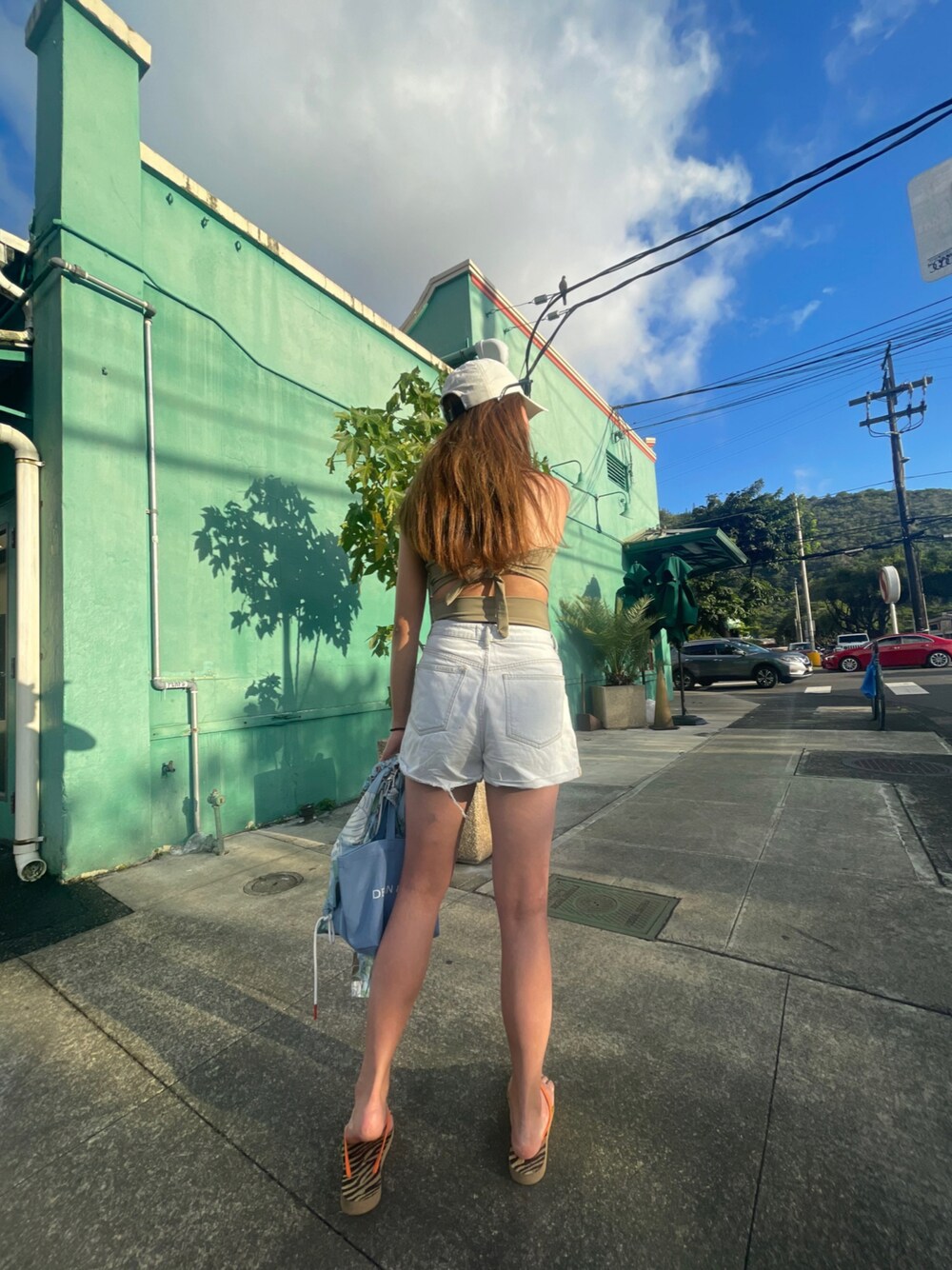 カイルアビーチの後にグリーンのスタバ🌴 大人が水着着る時ショーパン絶対いるよね。。