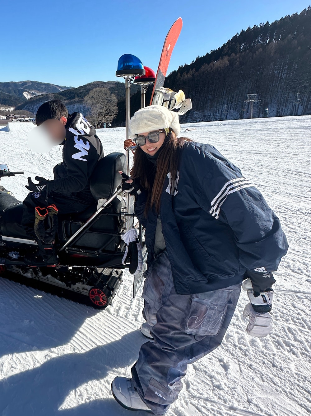 23-24シーズン🏂 adidasのジャケットは古着。 パンツはビブ。 ボードの時のサングラスは最悪飛んでったり壊れてもいいように1,000円くらいのやつ。 もふもふ帽子、褒めてもらえてご機嫌👒