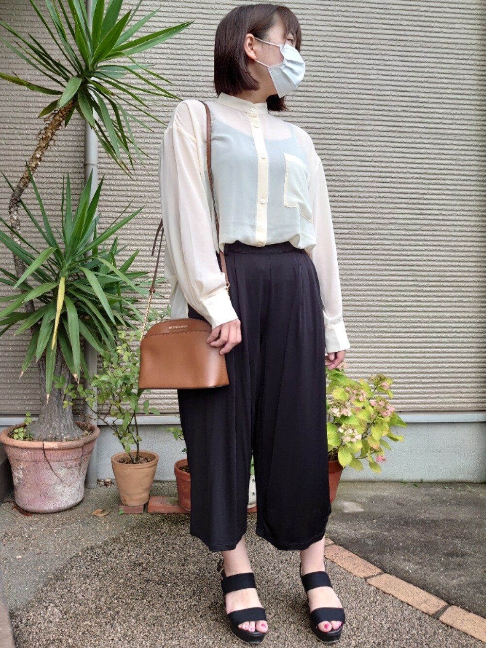 Riのシャツ/ブラウス「バックリボン 長袖 ノーカラー シアー ブラウス クリーム」を使ったコーディネート