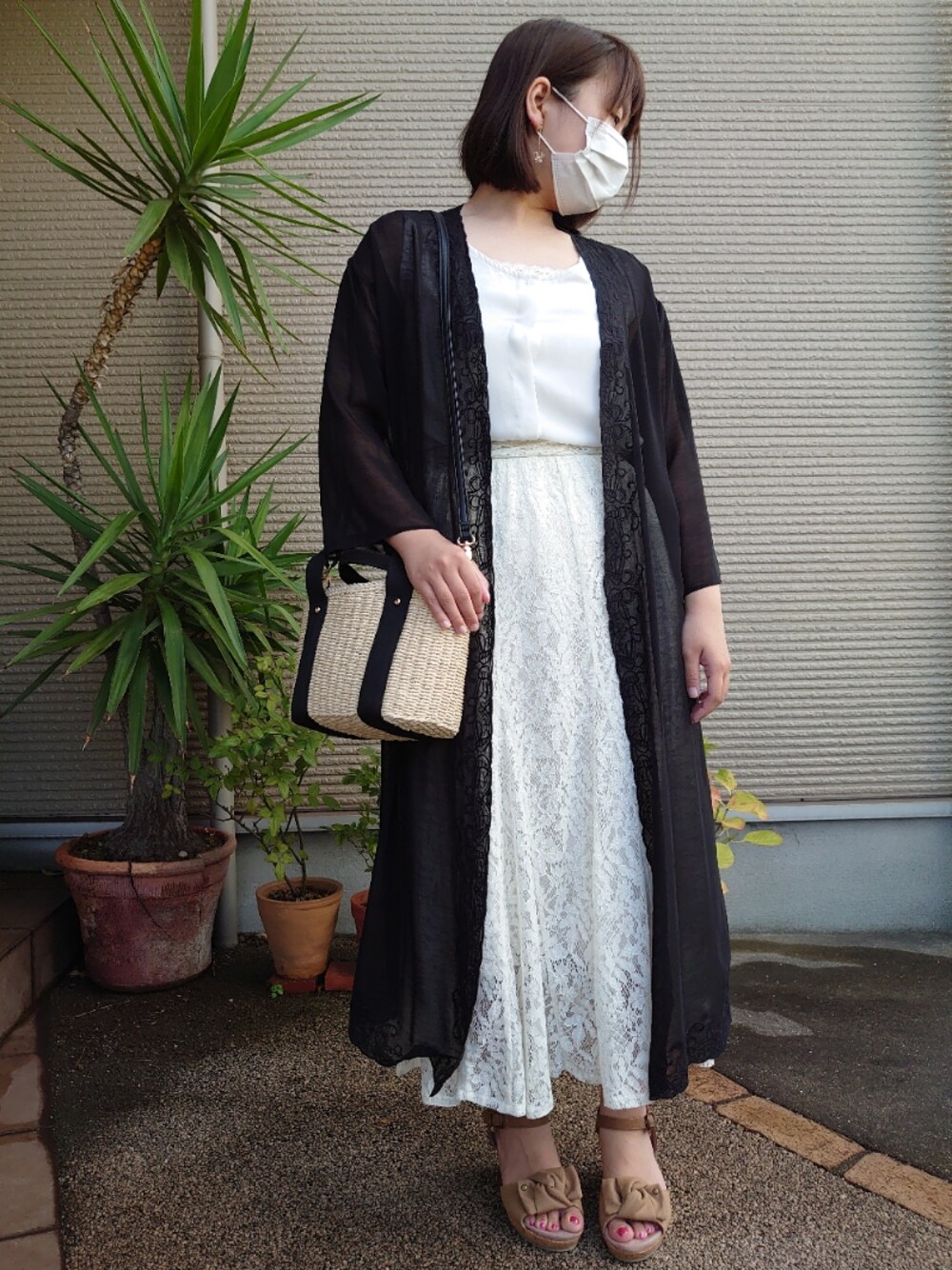 晴れ 29゚/23゚ 2021/07/24 前にしたコーデのトップスだけを替えてみました。 レースのトップスが多いので、 レーススカートに合わせるトップスが難しい(・・;)
