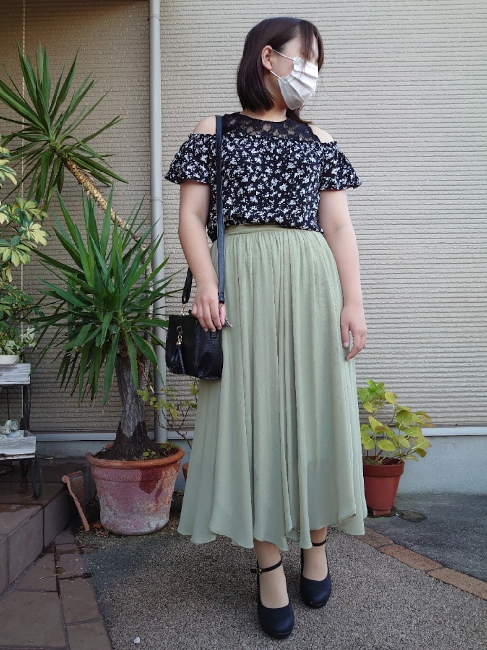 Riのスカート「イレヘムワッシャーシフォンスカート」を使ったコーディネート