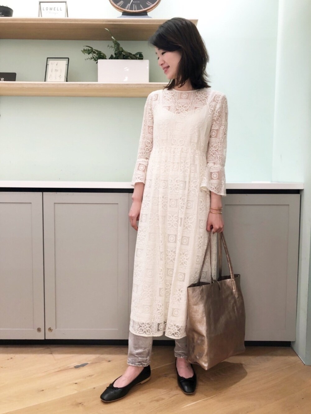 ノムさん(ピシェ アバハウス エスパル仙台店)のワンピース「フレアスリーブレースワンピース」を使ったコーディネート