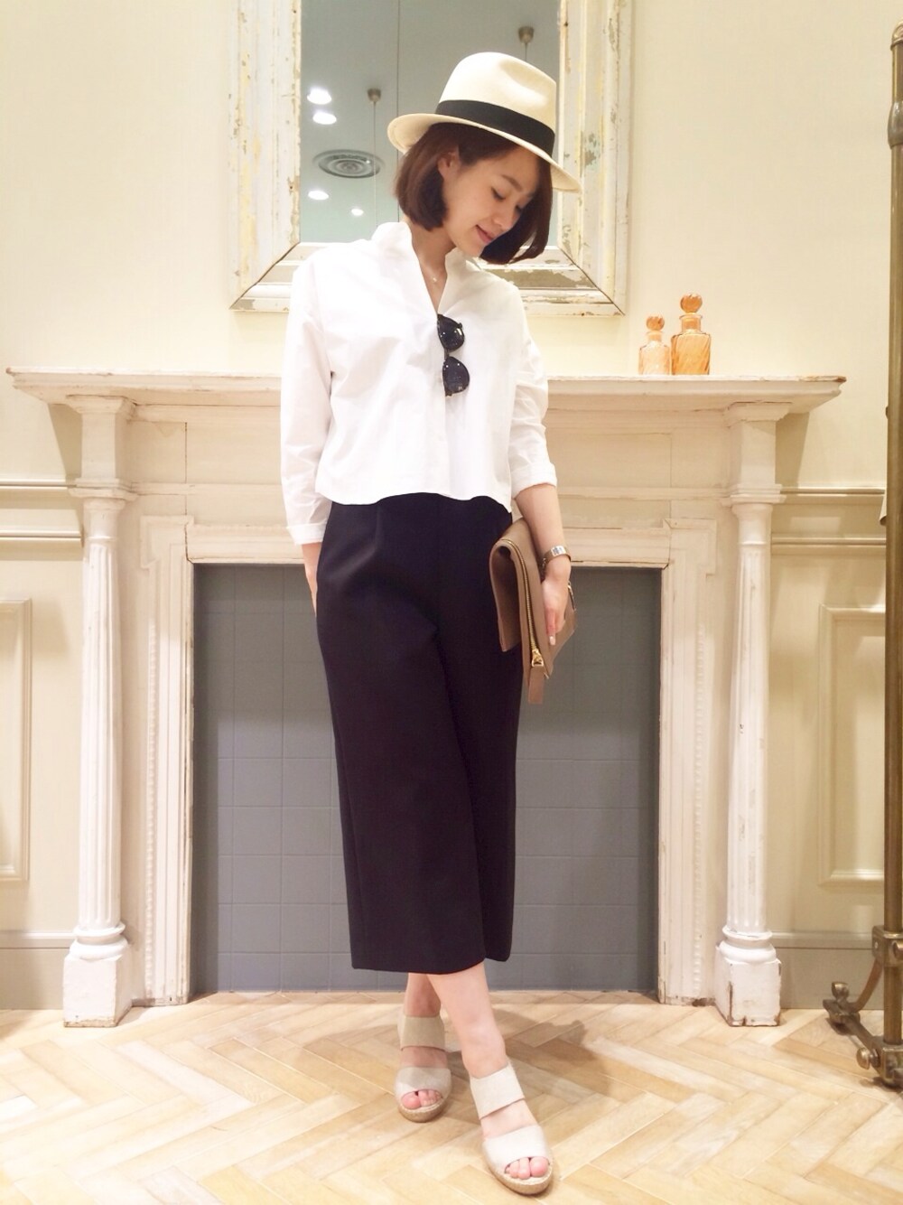 今年らしいガウチョパンツにコンパクトなシャツを合わせました♪ 小物でリゾート感を(^。^)