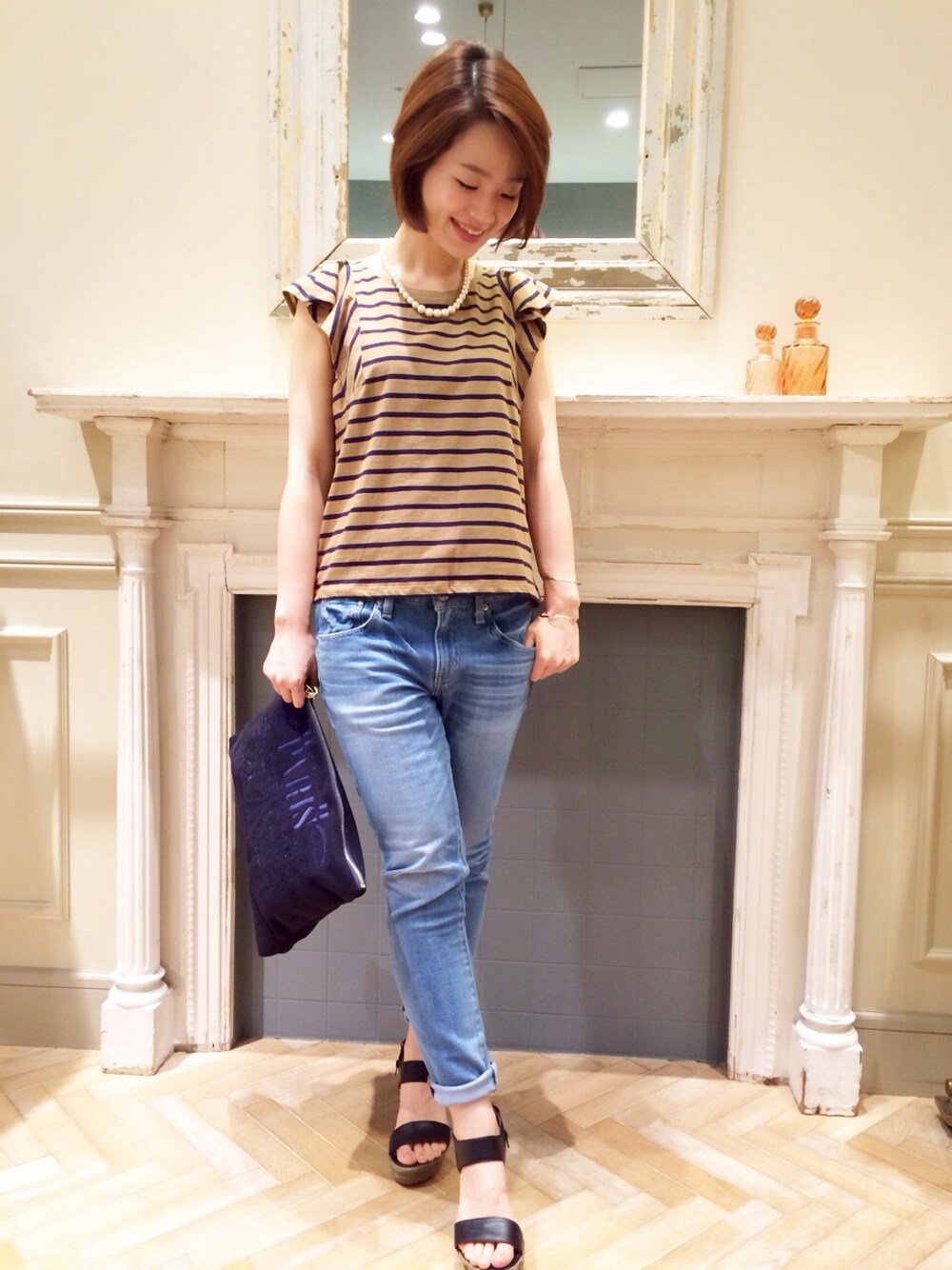 ほんのり秋色トップスを、カジュアルにデニムで合わせました(^^) デニムはRED CARD♪ 形の合うデニムにやっと出会えて即買いです☆