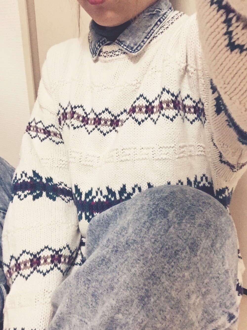久しぶりに。 完全usedなcodeです(笑)。 ケミカルなデニムオールインワンにニットをおん。