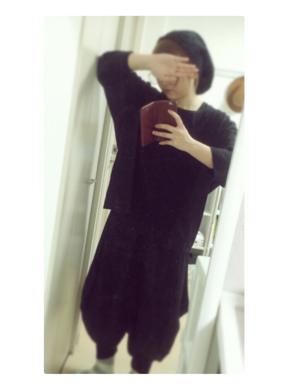 春服〜と考えていたら夜な夜な始まった1人コーデ祭り。 マイビューのカットソーにniituさんの面白い形をしたビックサイトパンツで。 これに足元Bopper合わせて。 帽子はこれまた面白いなんとも言えない形をした帽子です(笑)。 モードみたいに全身黒になりましたとさ。