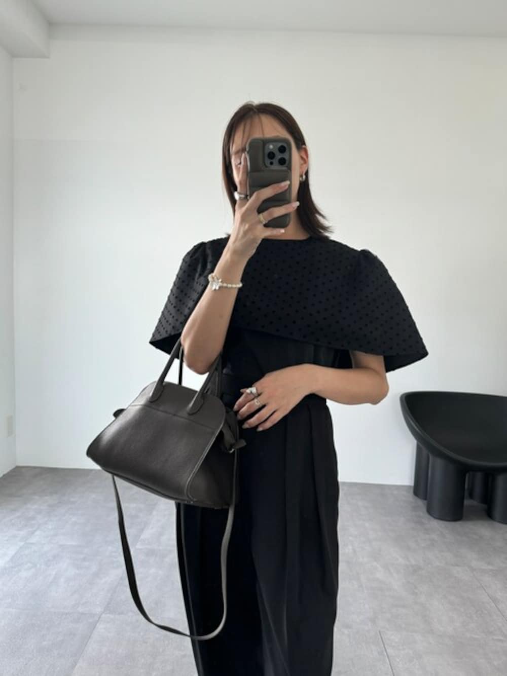 ちょっとしたフォーマルな場所でも使えるケープトップス。 ケープ部分がドットになっているから今年っぽく着られます🥰 ブラックもホワイトもどちらも使いやすくておすすめです!