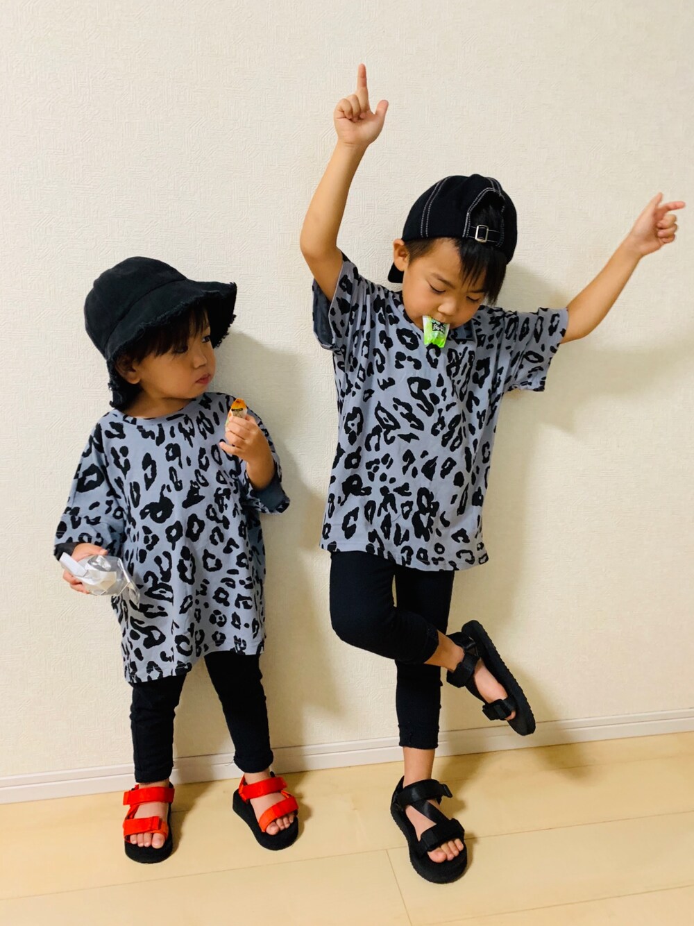 アーバンチェリーさんの セットアップで購入したレオパT🤩 ボトムスはベージュのセットやったんやけど 今回は黒スキニーで😙💓 130、110で何ともワンピやけど← めっちゃ可愛くてお気に入りになりそ😍