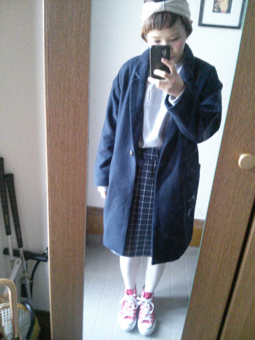 アウター : WEGO トップス : ハニーズ スカート : レトロガール スニーカー : コンバース