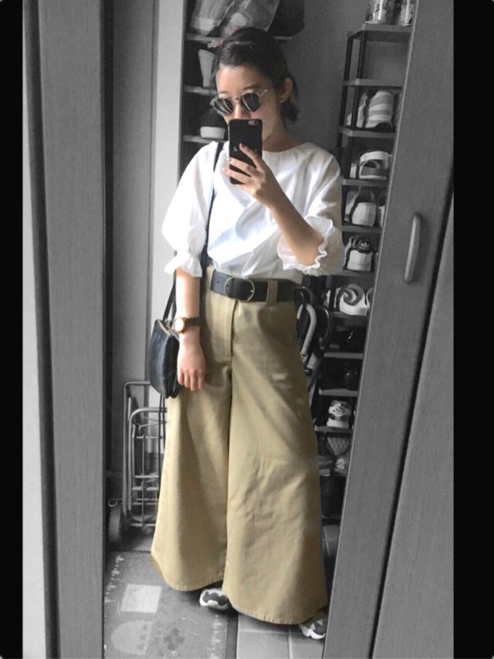 いいね、セーブありがとうございます! ブラウスとワイドパンツでシンプルに😚