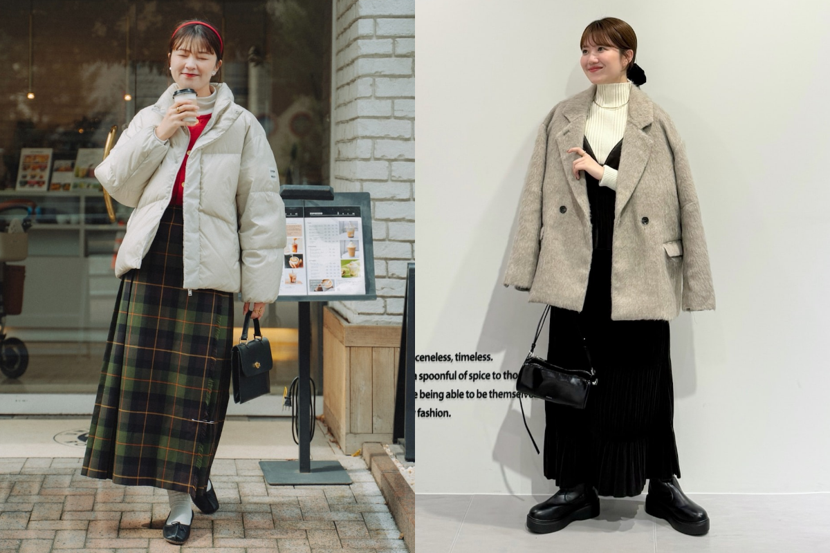 露出を抑えることで上品に見えるだけでなく、中に厚手のタイツやブーツを仕込んでも見えにくいため、防寒性が高まります。座ったり歩いたりする際に裾が邪魔にならないよう、広がりすぎないシルエットを選んでみてはいかがでしょうか。