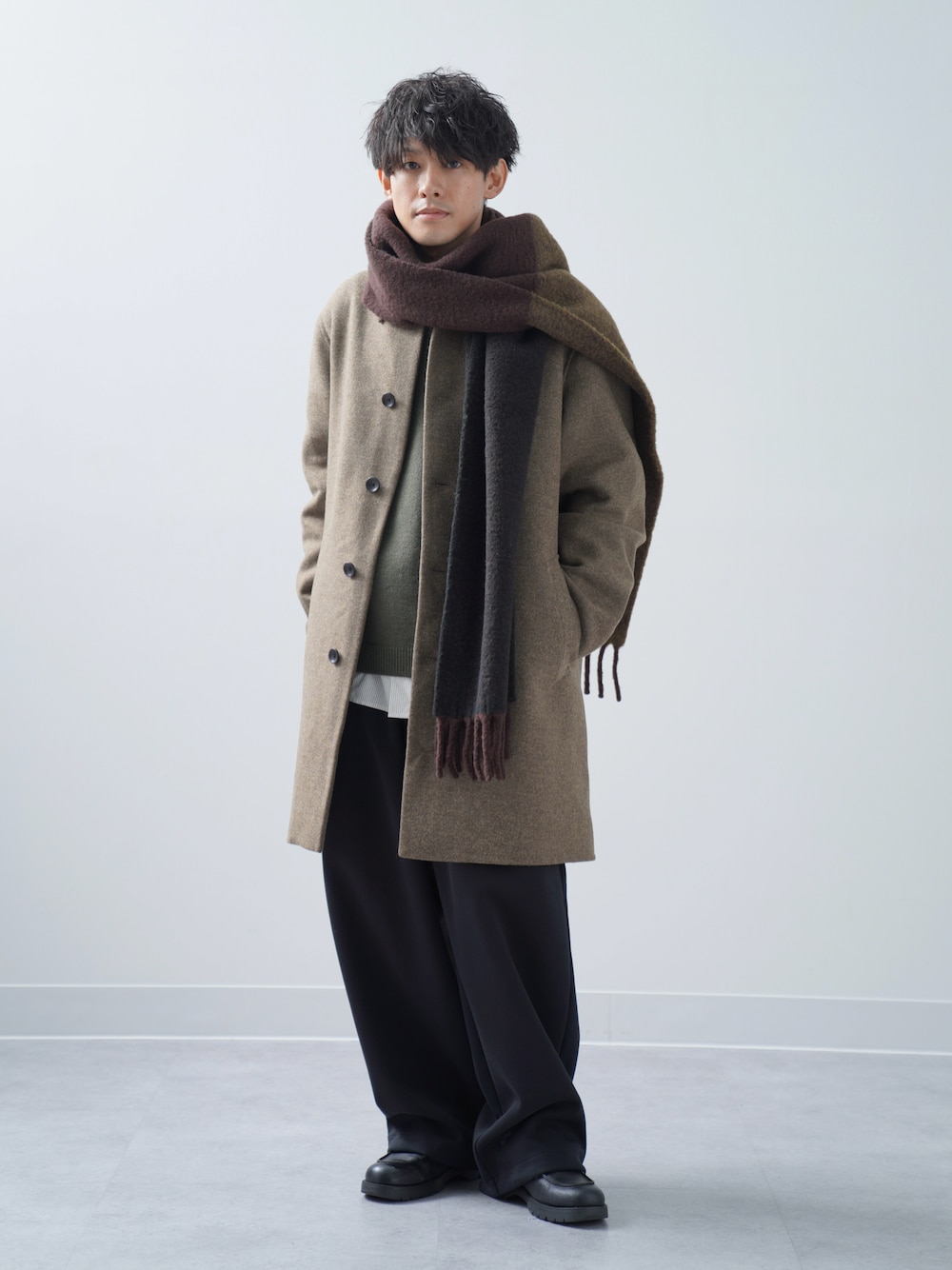 素材は、冬らしい厚みのあるウール混などを選ぶと、防寒と見た目の良さを両立できます。足元に重心を感じさせる配色、具体的にはボトムスに暗い色を持ってくることで、全体の立ち姿がぐっと安定してバランス良くに見えやすくなります。