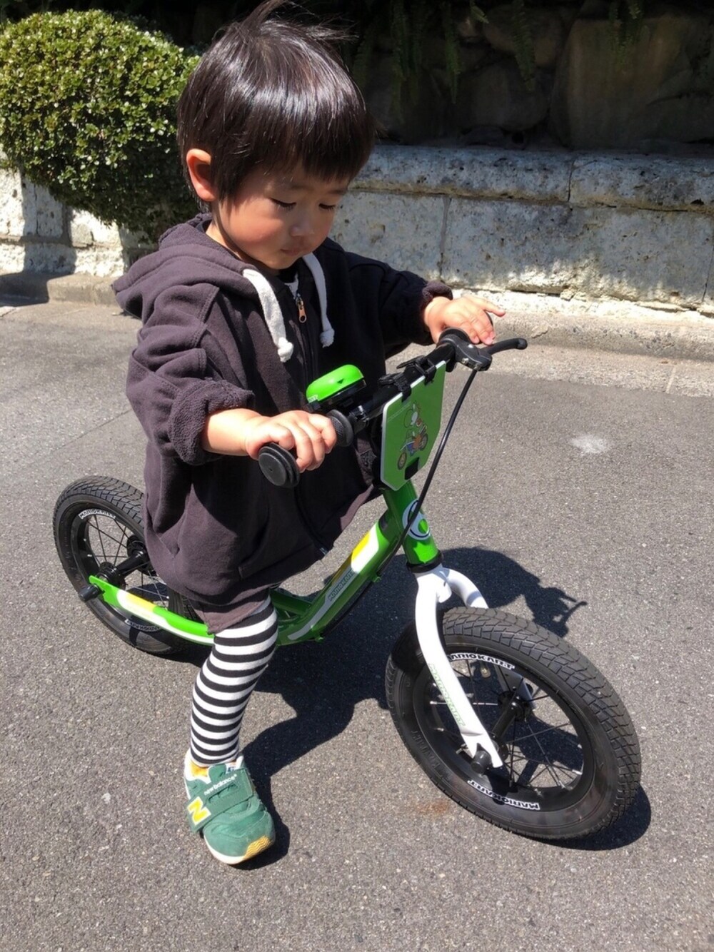 2歳8ヶ月 ・ キックバイクはヨッシーだよ☺︎ 息子の大好きカラーのみどり ◡̉̈ 💕