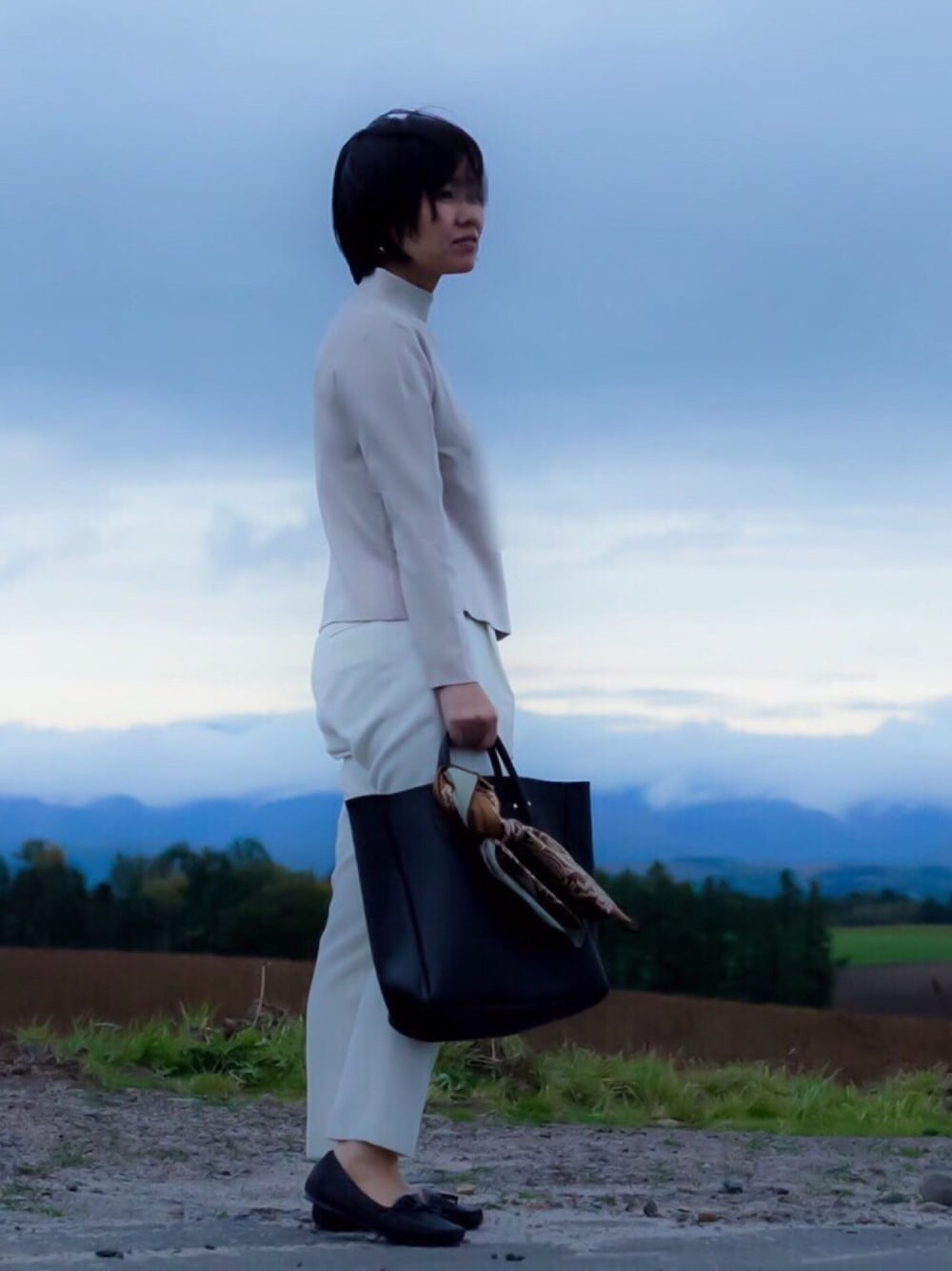 休日コーデ 風の強い夕方、光を集めて撮りました。 同系色でまとめてみました。服の色はホワイト系で寒い感じですが、あったかです(^^)