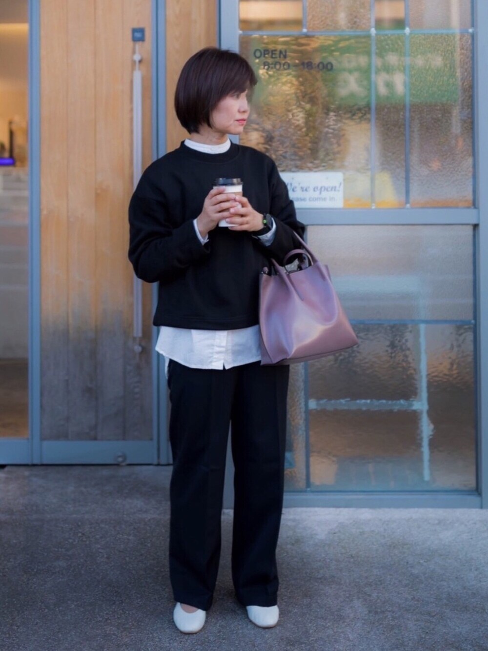 休日コーデ zaraのトレーナー、安価で形も気に入ったのですが、脱ぐとブラウスに毛がつくつく…なので脱げません💦 いいね、save、フォローいつもありがとうございます🙏💦