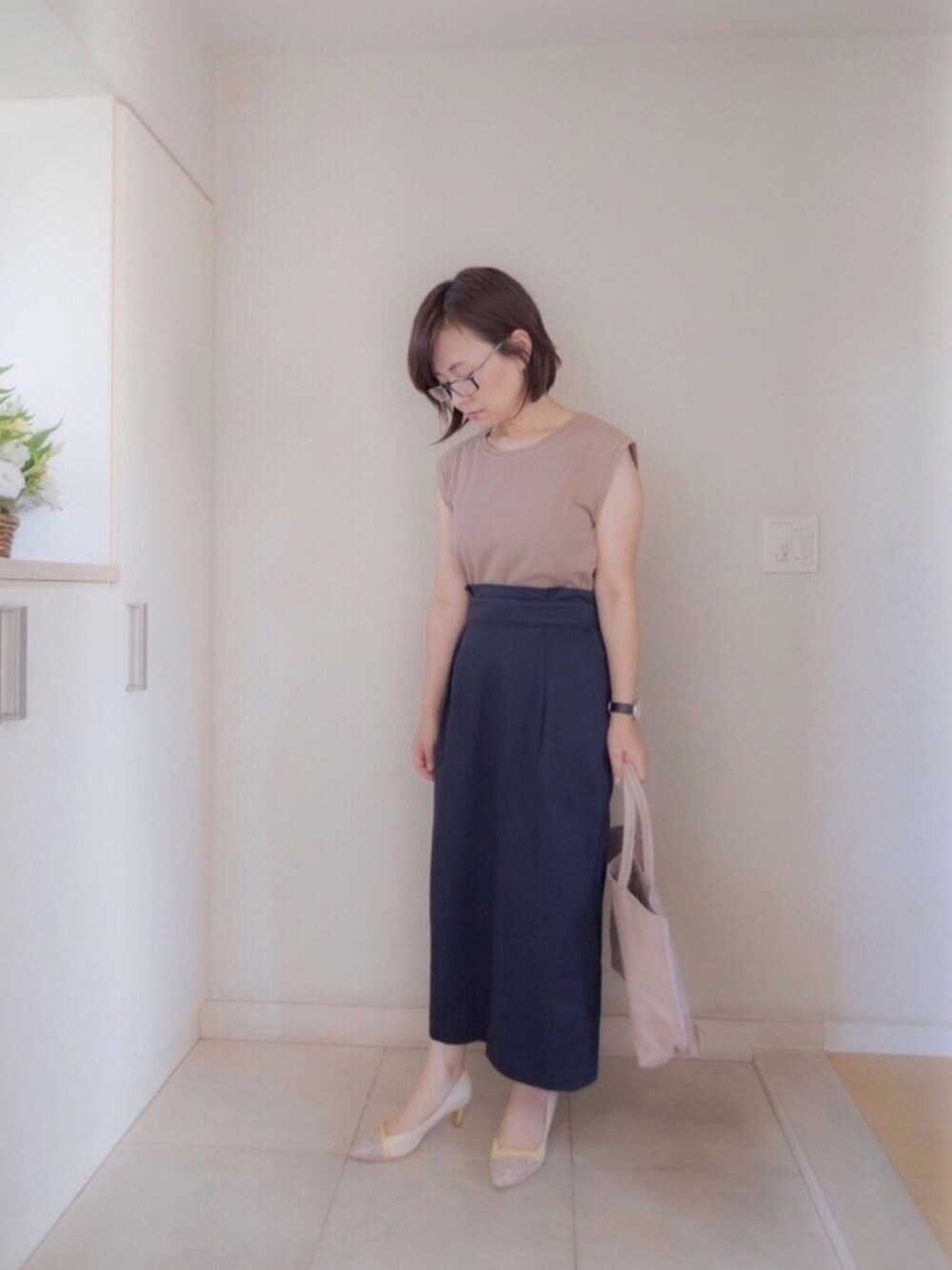 通勤コーデ♪ フレンチスリーブT×ロングタイトスカート 涼しい涼しい^ ^ 見てくださりありがとうございます^ ^