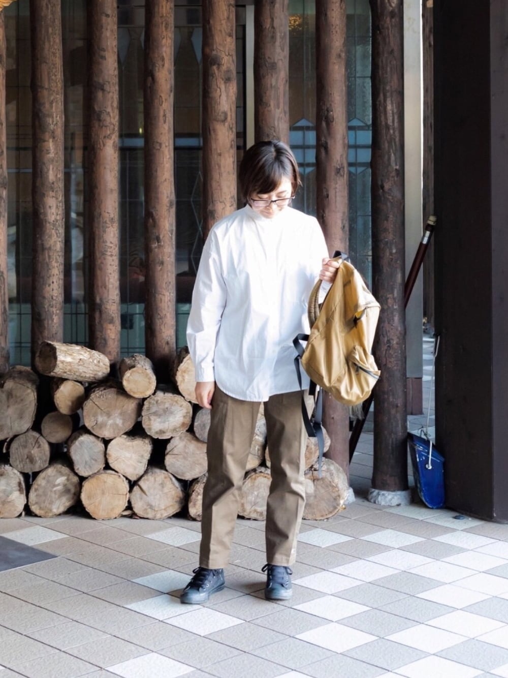 あるぼるのシャツ/ブラウス「タイプライター ウォッシャブルバンドカラービッグシャツ」を使ったコーディネート