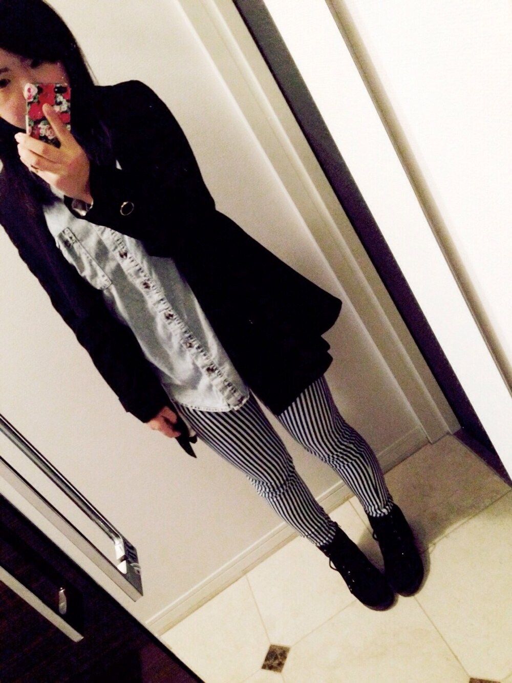 お久しぶりです! 春やって言うのに寒い…😭 でも冬物出すまででもないしなぁ…って感じの微妙な天気ですね😣 うちでもやっと春物のコート出してきました! 私には珍しいシャツスタイル… 久しぶりにストライプのスキニーを出してきました💓