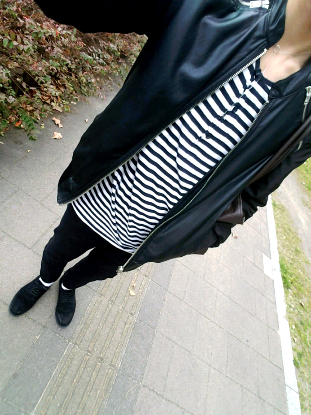 暇だったので散歩している時です🚶 ファインボーイズで「春はモノトーンが軸だ!」っとあったのでモノトーンコーデしてみました。笑 アウター M トップス M パンツ M 靴 26