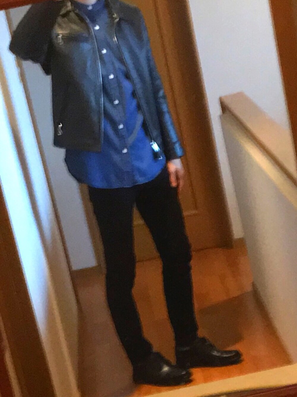 カメラが悪いのかな、ボケている 今日はシンプルで少し大人っぽいコーデかな。?