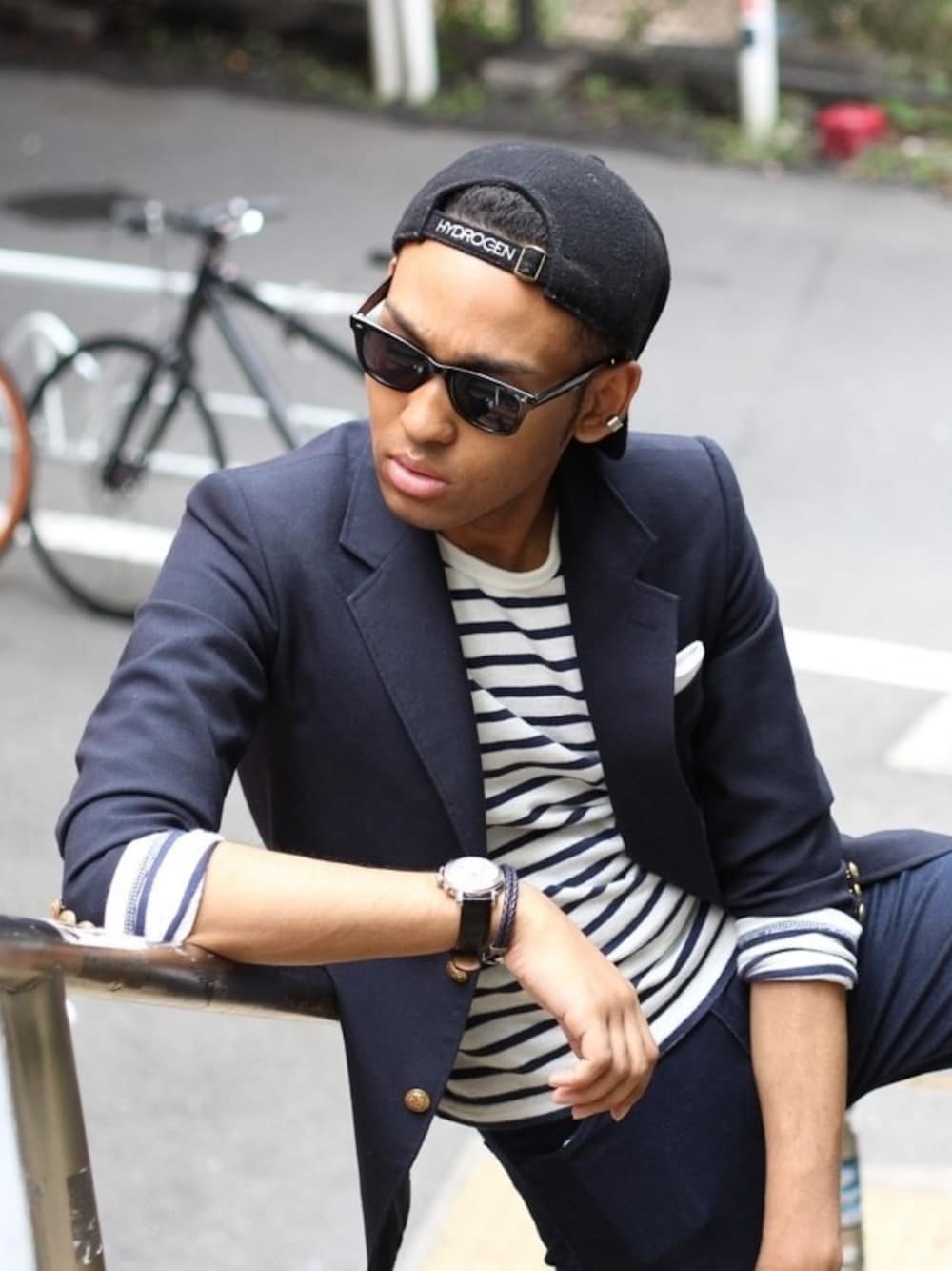 ジャケットに外してキャップ。がっつりストリートより、僕は綺麗目にストリートのスタイルを入れるのが好きです^_^ジャケットを着るならチーフもしっかりと。