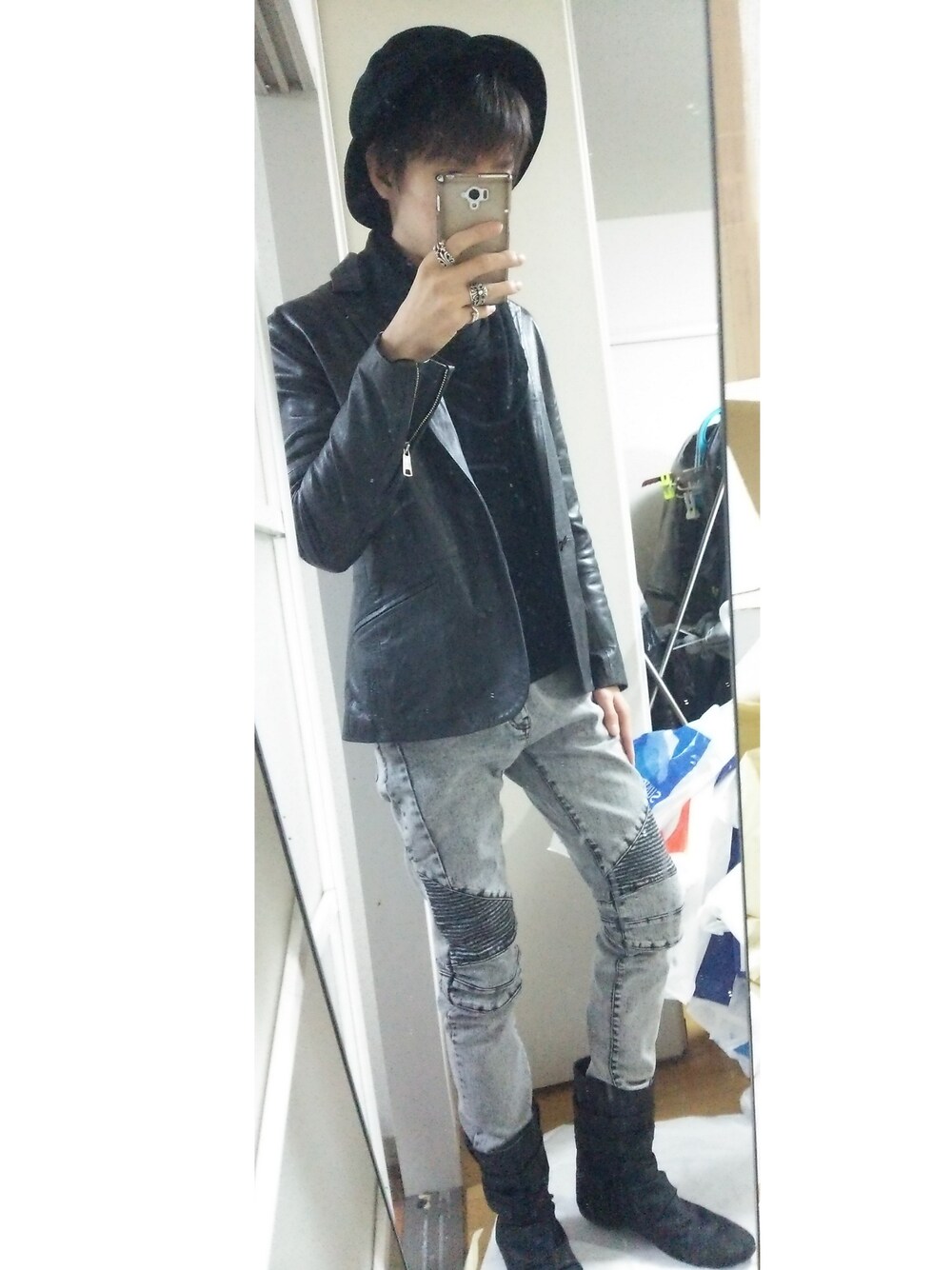 レザーのテーラードとドレープ風タートルネック着てるんですが、黒×黒で境目が分かりづらいのですね。 そしてこのバイカーデニムはバルマンじゃなくて楽天のセールで3600円で買いました。 普通に良いので本物買って損した気分です。 この格好みた後輩に「先輩、三代目意識っすか?ミーハーっすね。(ニヤニヤ」って言われて否定したら 「流行ってますもんね、真似したいの分かりますよ(ニヤニヤ」って返されて複雑でした。 僕、彼らがEXILEの子分で変身ポーズしながら走ってるフリしてるくらいしか知らないんですよねぇ。 曲で唯一知ってるチューチュートレインも本家のzoo派です。