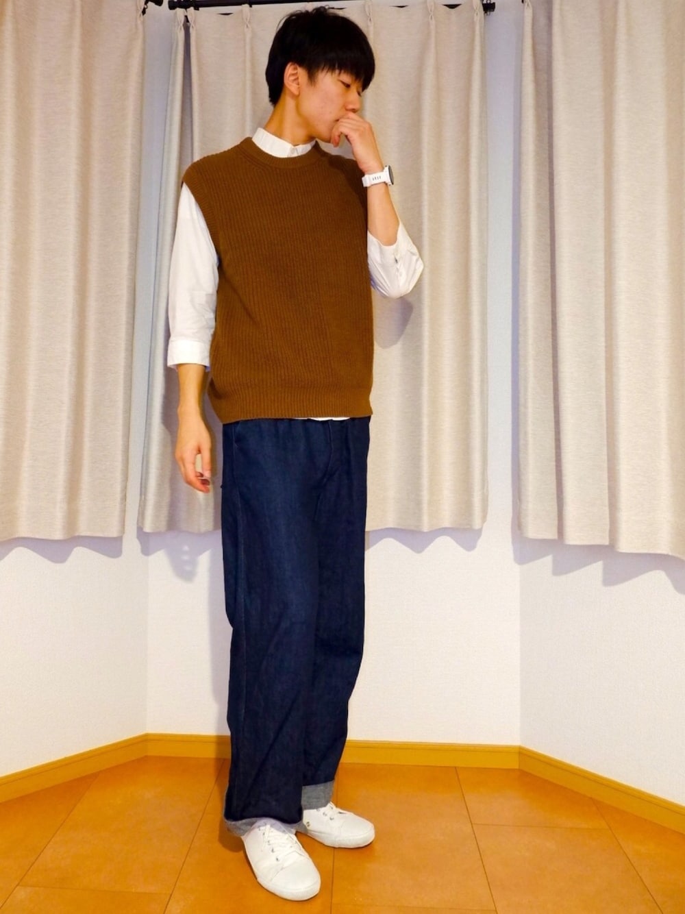 ユニクロのオーバーサイズクルーネックベスト。 王道の白シャツに合わせました。 オーバーサイズなんでゆるく、きつくもならず着れます。 いろいろ合わせられそう。 ボトムスはMHLのワイドデニム。 まだ少し暑いですがぼちぼち秋コーデやっていきますか。 台風10号すごそうですね。 備えあれば憂いなし、九州のみなさんしっかり対策してくださいな。 あ、そうそう。ユニクロのべすとは9月10日までセールみたいです。 ぜひ✋