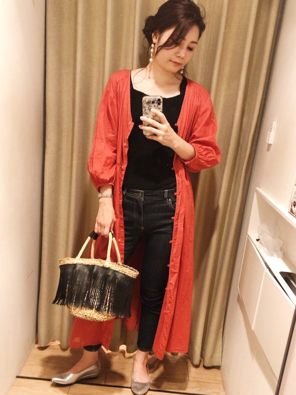 初めて赤に挑戦🥰💓 意外と何にでも合う! ベージュ✖️レッド カーキ✖️レッド 可愛かった〜💐💕