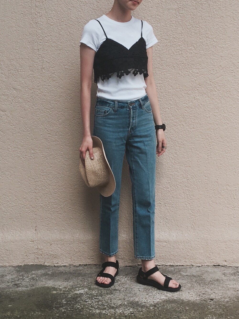 たびたび失礼します🙏🏻 帽子・ビスチェ・TEVA▶︎SENSE OF PLACE Tシャツ▶︎UNIQLO デニム▶︎milaowen いつもは帽子苦手であまりかぶらないけど、 メンズだしこれなら気負わずにかぶれそう👒 レースのビスチェ、シンプルな作りで丈短めなのでバランス取りやすい👌🏻 紐調節できるのも良い👌🏻