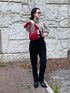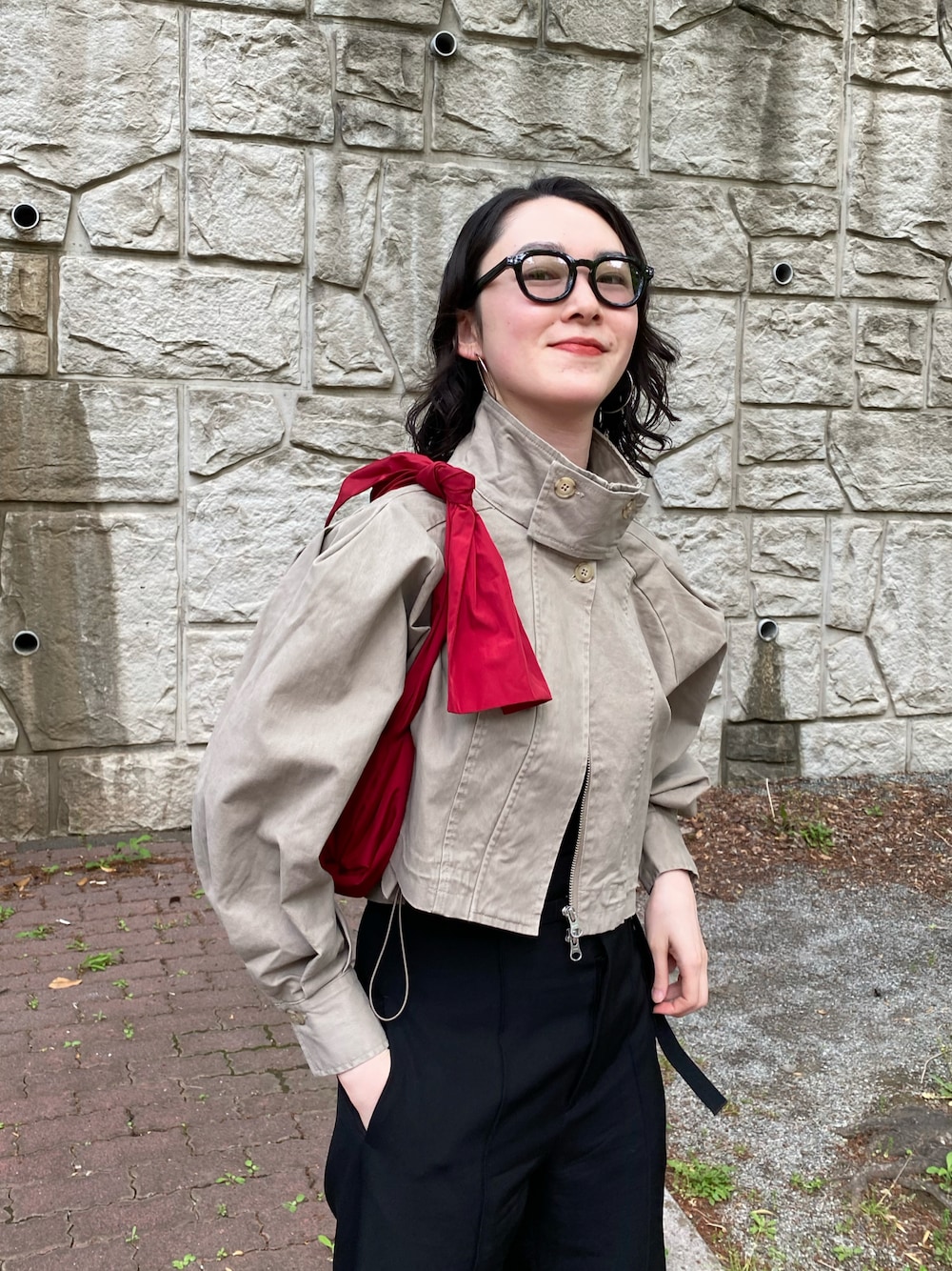 最近ショートジャケットとハイウェストパンツの組み合わせが気に入ってる❣️ ジャケットは首元のボタンだけ留めて。 新しい髪型にパーマもお気に入り🕶️