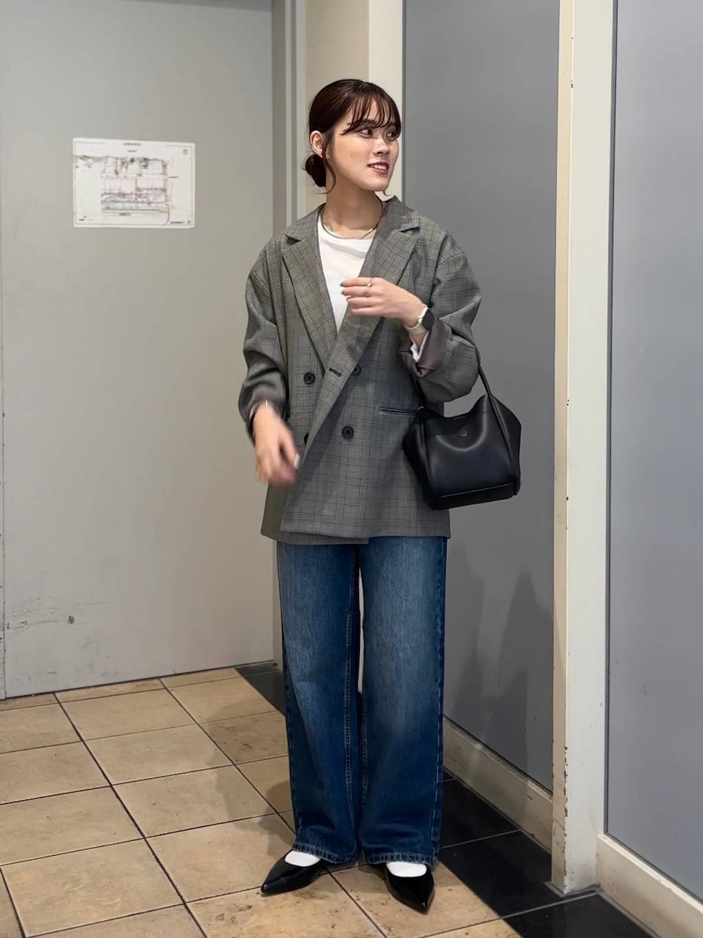 ジャケットコーデ!! 毎年人気のダブルジャケット✨ ちょっとラフにデニム合わせも可愛いですよ♡ 肩回りゆったり目のジャケットなので 中に着込めます!🙆♀️