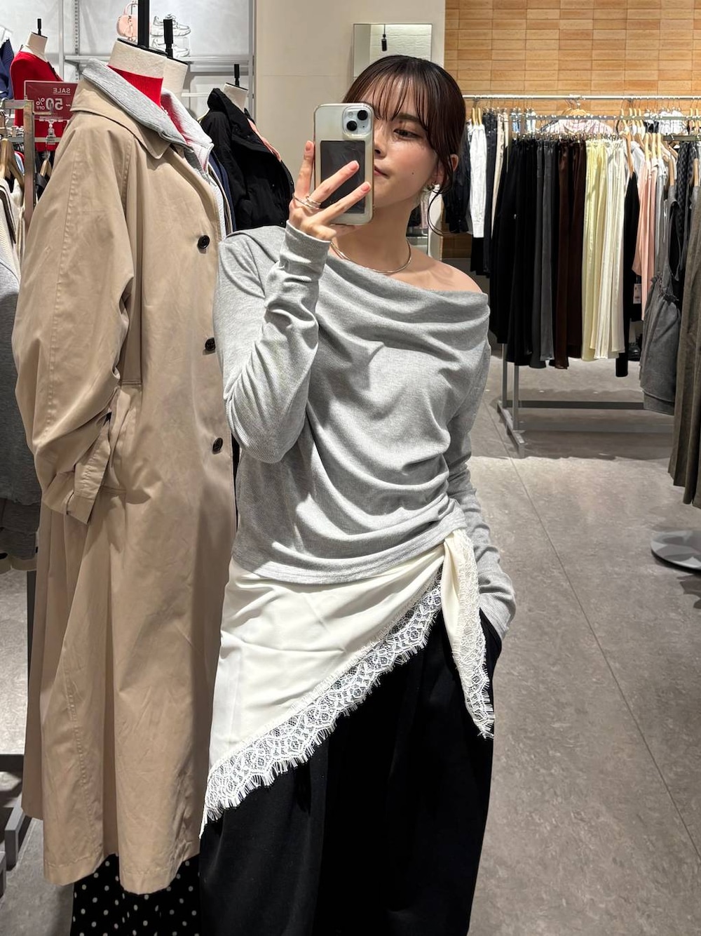 一枚でオシャレ見えトップス✨ レーススカーフを巻くだけで高見えしますよ〜♡