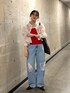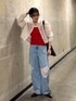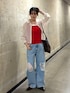 カジュアルコーデ✨ シンプルのシアーシャツ✖️デニム合わせに インナーと小物でカラーをプラスしてみました〜🫶 色物着るの苦手な方でも インナーからだと挑戦しやすいのでオススメです!