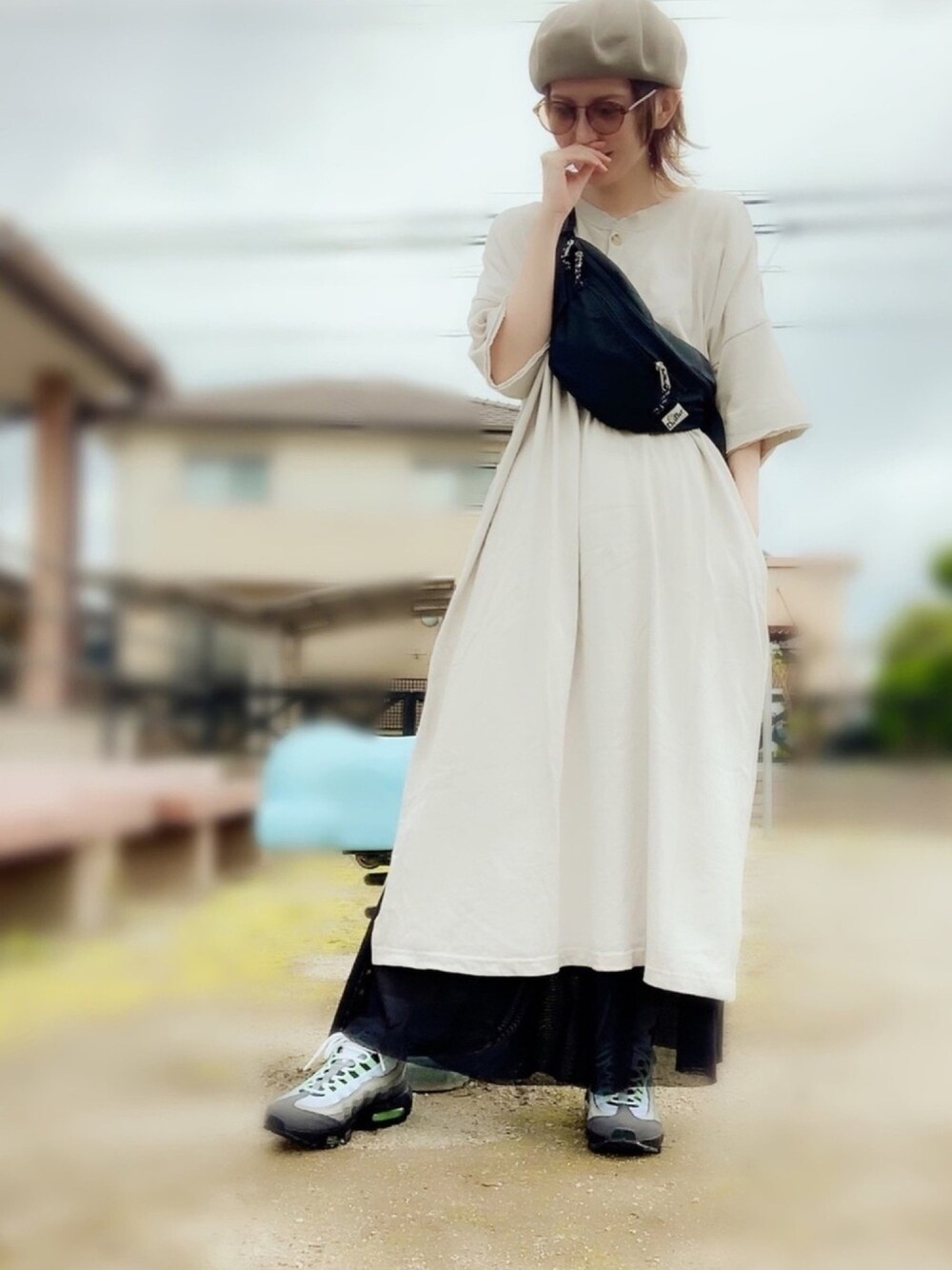✯asaのワンピース「WEB限定 OE天竺×フライス5分袖 前後2WAY 後ヘンリーワンピース」を使ったコーディネート