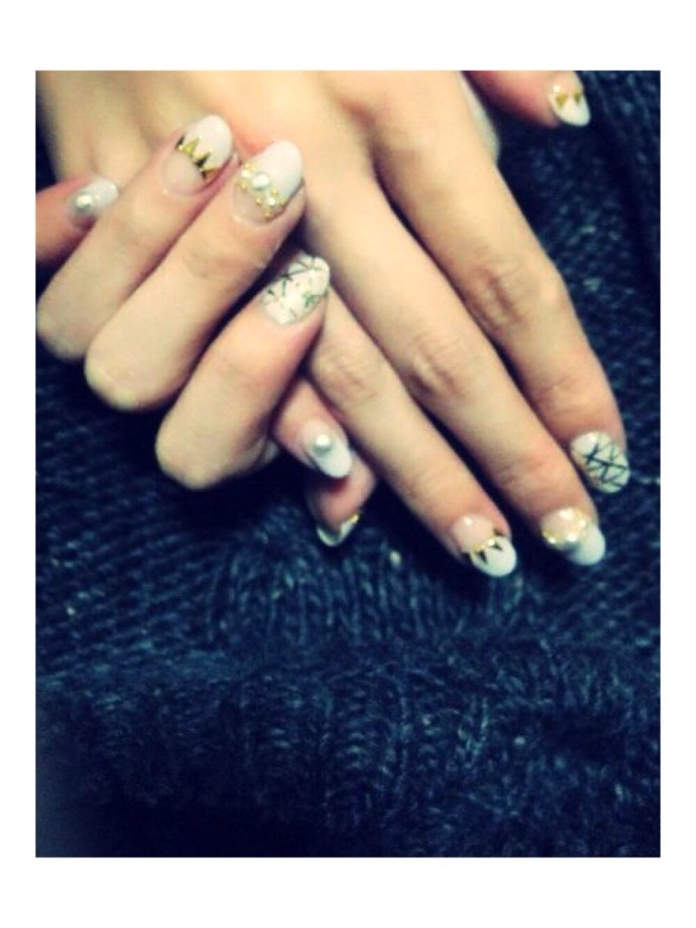 1月のネイル。 △スタッズにパールのストーン盛り沢山♡ やっぱり好き勝手に出来るのたのしー!