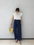 一枚でとっても可愛いレースのブラウス。 胸元の細かいレースが華やかさを増してくれます。 袖のフリルも甘さがあって、可愛いです。 また袖の感じが、涼しさをより感じられます。 カジュアルにデニムで合わせたり、カーゴパンツで合わせて甘すぎないコーデもオススメです◎ 大人気なセミワイドデニムは、何度履いても履きやすくシルエットが綺麗。 高身長さんは38サイズがオススメです◎