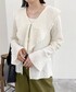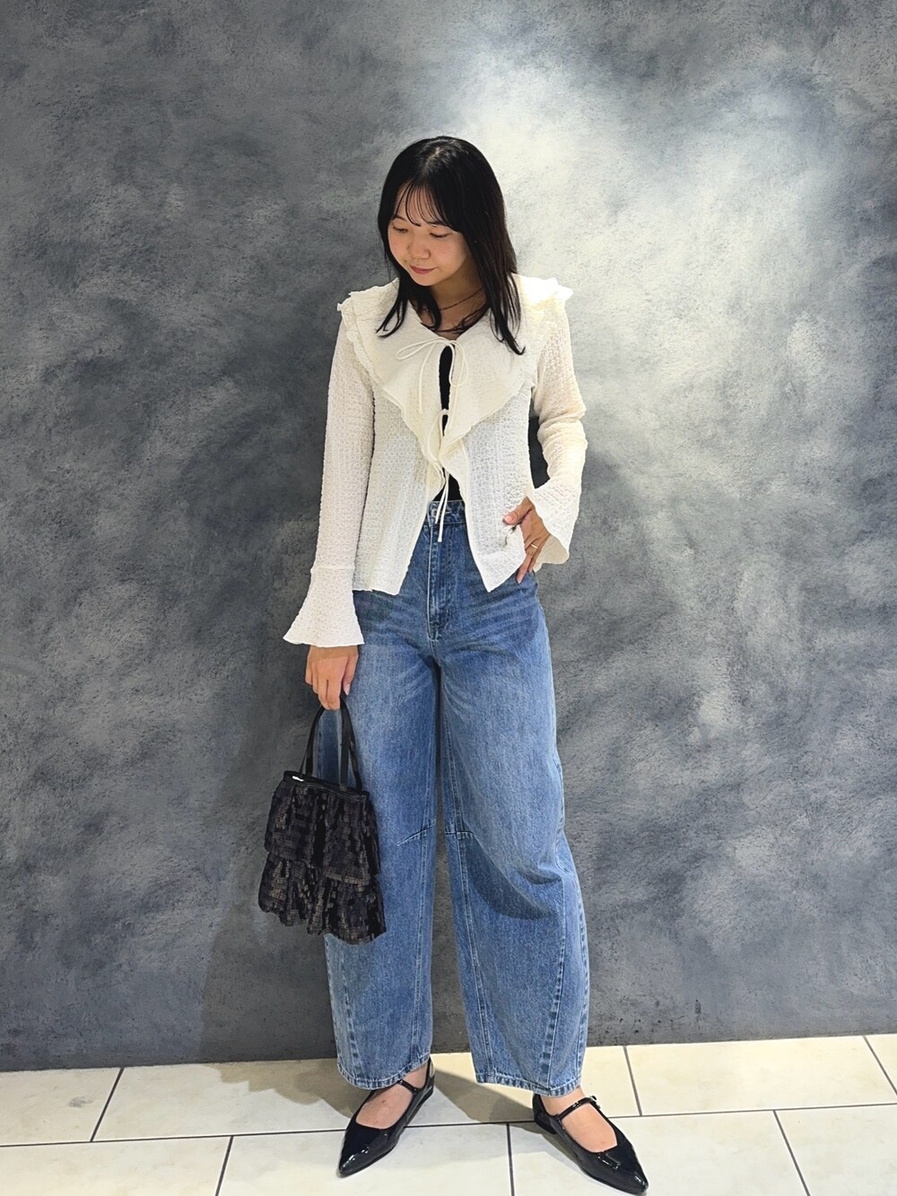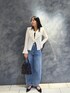 甘々なブラウスです。可愛い… 袖、胸元にフリルが効いてる一枚。 白✖️フリルが甘々ですが、デニムで少しカジュアルダウンしました。 生地が柔らかく、とにかく着心地もよく ちくちくしたり全くないので着やすいです。 シワにもなりにくいので、お家でネット入れてガシガシ洗えるのもポイント。 着丈が絶妙に長めなのまヒップまで隠れて安心感があって着回し力も◎ ボトムスはキャミワンピの上から羽織ったりできて重宝します。