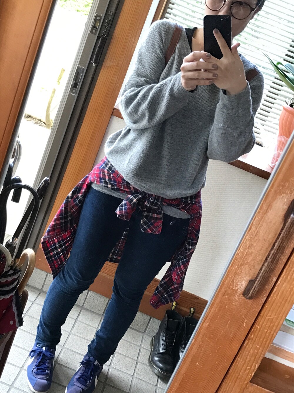 いつぞやのコーデ。 前髪もあげてポニーテールしてメガネかけてお姉さんっぽいを意識してた気がする