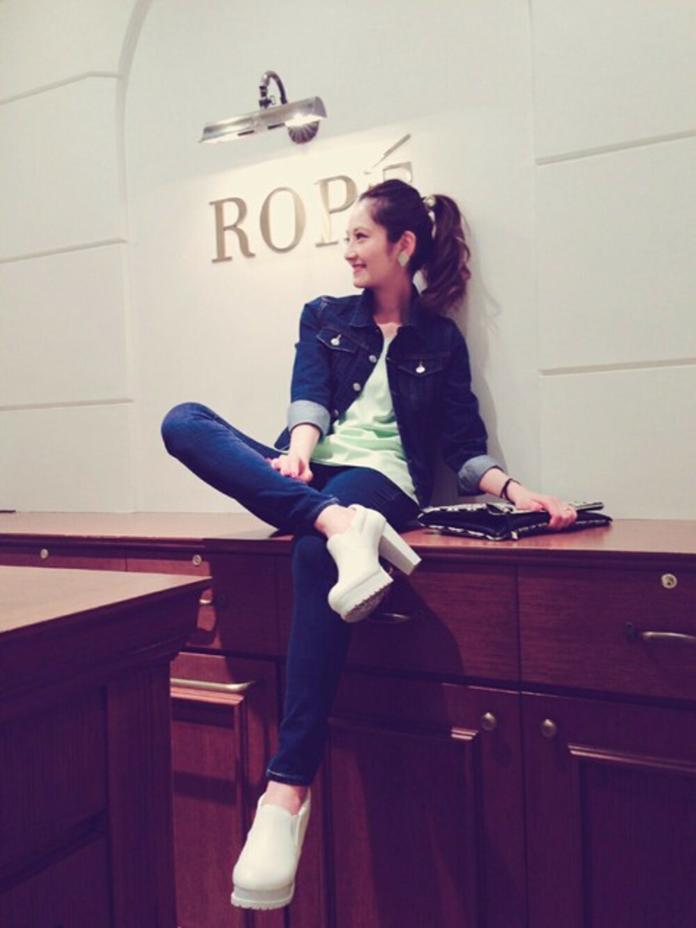 こんにちわ!Gジャンとスキニーデニムのコーディネートはすっごく動きやすくて元気よく遊びに行きたくなります🍃😝👍👍インナーはマスカットのような色のタンクトップを選びました✨🍃🐢