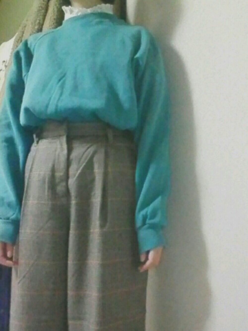 下北沢の古着屋さんで買ったスウェットに グレンチェックのパンツを合わせました