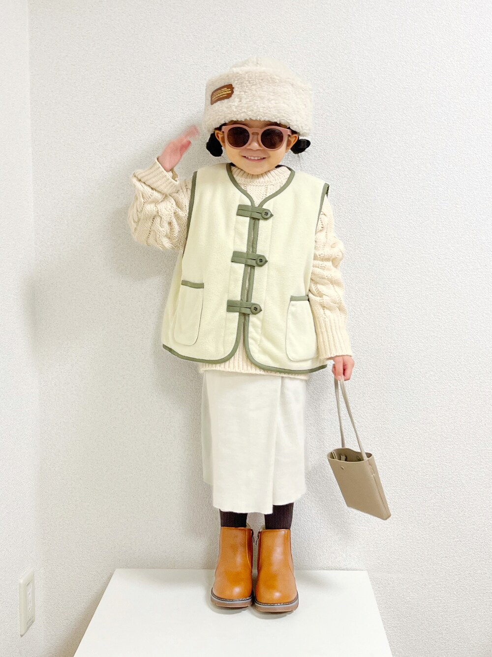 お目にとめて頂き有難うございます️♡ いつも♡、お気に入り、フォルダinしてくださる皆さま、本当にありがとうございます︎⭐︎コメント、フォローもとっても嬉しいです❁ #ベスト リバーシブルベストであったか冬コーデ⛄️ tops.. #lowrysfarm リバーシブルベスト ♡ リバーシブルが嬉しいベスト✨ 片面がフリースなので見た目にもあたたかそうです❤︎✨ボタン部分のデザインも可愛い♡ tops.. #broom ケーブル編みセーター♡ 一昨年?からお気に入りのセーター^_^ 今年も着られてよかった❤︎ シンプルで合わせやすいです🎶 今年の冬も沢山活躍しそうです💓 ベストのパイピングが可愛くて目立たせたかったのでワントーンコーデにしてみました✨ 今年の冬に着たい、ふわふわあったかコーデです♡♡ ⭐︎ 5y7m...15.5kg 103.8cm (10/21測定) いつも皆様の気持ちのこもった素敵な📂ありがとうございます( ; ; )どの📁もとっても素敵で、楽しみに見させて頂いています!!❤️感謝の気持ちでいっぱいです❣️ ⭐︎********⭐︎********⭐︎*******⭐︎******* instagram▷asairo.wear ⭐︎********⭐︎********⭐︎*******⭐︎*******
